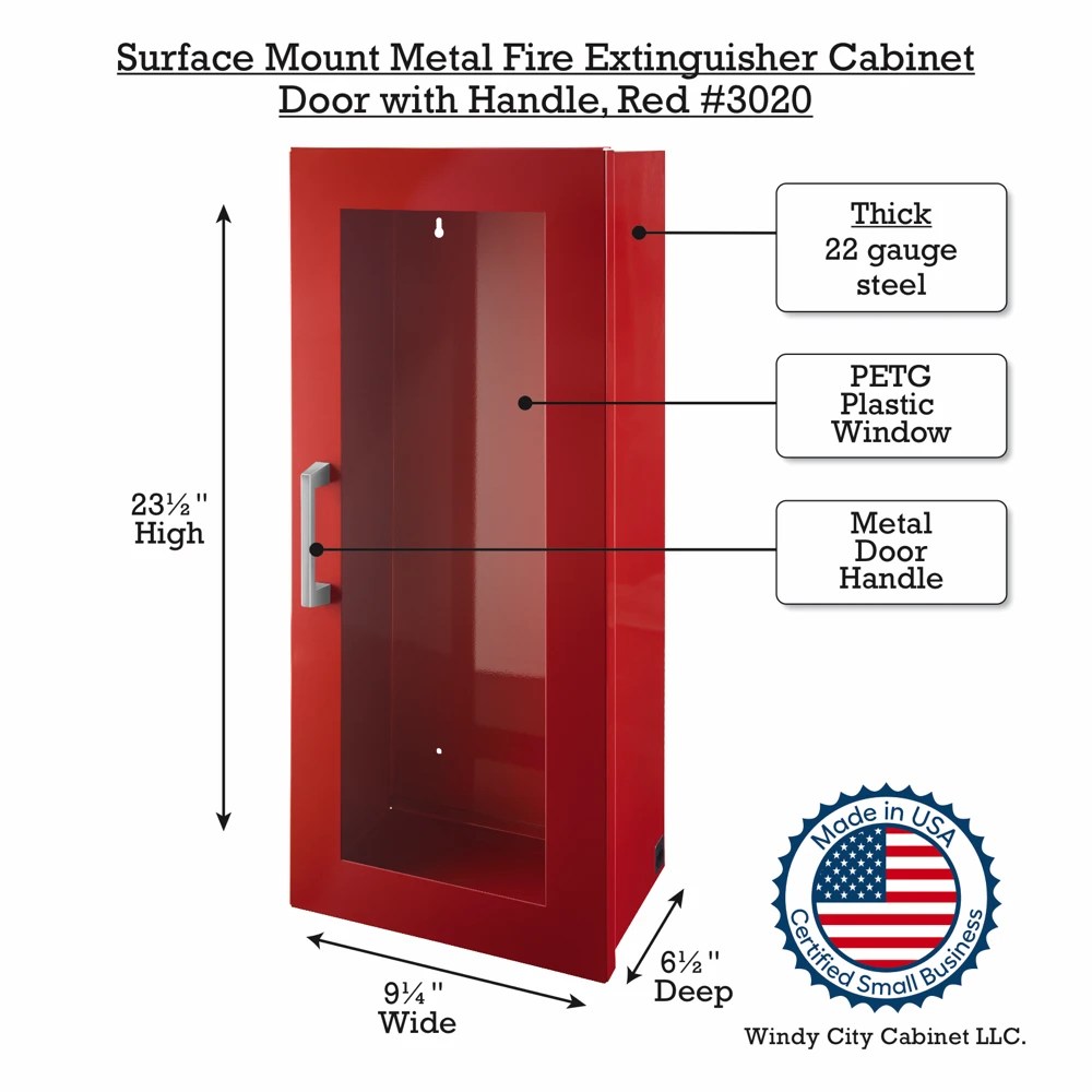 Surface Mount Metal Fire Extinguisher Cabinet, Door with Handle, Red